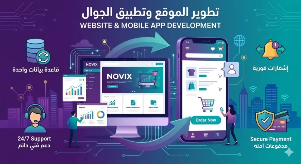 لماذا تبني متجراً وتنتظر العملاء؟ احصل على نظام بيعي متكامل يجمع بين **قوة الويب** و**سرعة التطبيق**. متجر إلكتروني احترافي متزامن لحظياً مع تطبيق (Native) لنظامي iOS و Android.